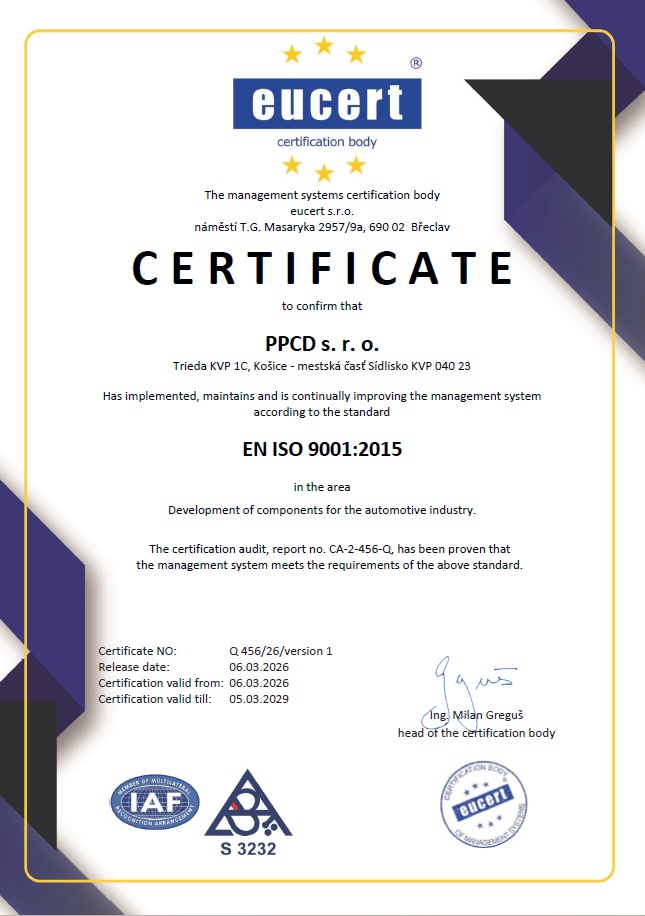 Quality certificate according to EN ISO 9001:2015: